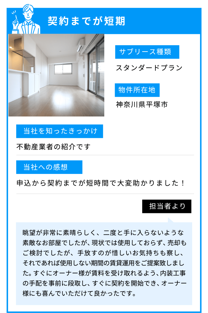 1戸~でも、契約内容もオーナー様に合わせた柔軟な契約内容